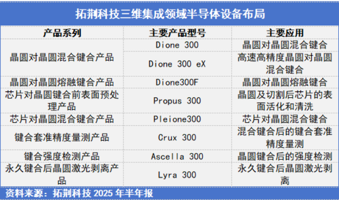 拓荆科技早已在此布局,其开发的“键合设备”就是三维集成中用来将芯片像胶水一样精准粘合的关键机器。2024年,这块业务收入已接近1亿元,增速超48%,开始起量。