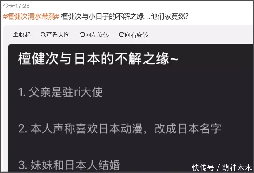 还有爆料称,檀健次的妹妹嫁给了日本人——父母辈给儿子改日本名,子女辈同样对日本充满感情,网友都忍不住质疑他们全家亲日。