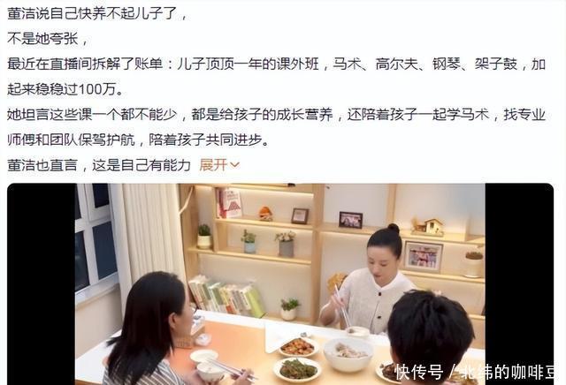 最近的一场直播中,董洁忽然透露目前自己正面临经济压力,无法承担儿子顶顶一年超过百万的课外班费用,令外界大吃一惊。