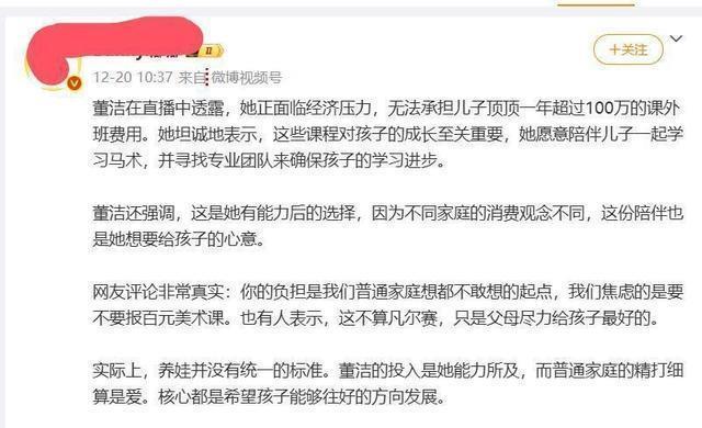 众所周知,出道超20年的她也曾大红大紫过,虽曾因离婚风波受到打击,但并未影响演艺事业的发展,尤其是近些年还将直播业做得风生水起,私下里的投资也是一个接一个。 但直播中,董洁坦言给儿子报的都是诸如马术、高尔夫等“贵族”项目,有些课程甚至一节课45分钟就要近千元,还不包括买各种装备。