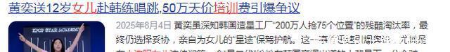 沈佳润的投入更具体:包括早期的韩语、舞蹈、歌唱等培训,每一项动辄都是上万元的开支。 之前,黄奕也曾因将12岁的女儿送往韩国做练习生引发争议,当时还有一个热搜关键词就是:50万天价培训费……